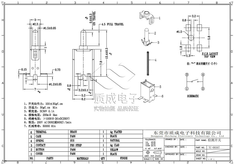 無聲烏龜六腳側(cè)按常開常閉微型限位按鈕檢測開關TD-1624SA-01