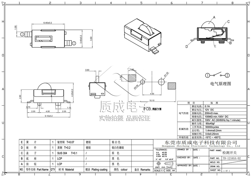 圓頭按鈕貼片SMT限位相機檢測開關4腳正按自動復位開關耐高溫TD-1216SA-02