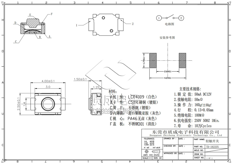 超薄薄膜防水輕觸開關3.7X3.7X0.4無點直腳超 小型藍牙按鍵開關
