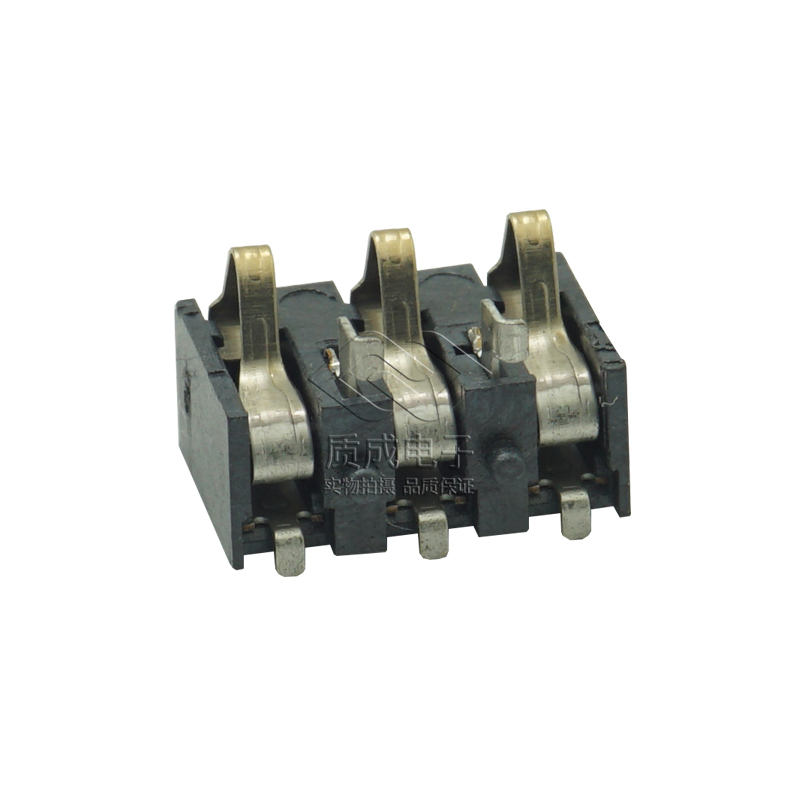 3P外焊系列電池座側壓式手機鋰電池端子連接器塑高5.7H立式有柱彈片手持設備