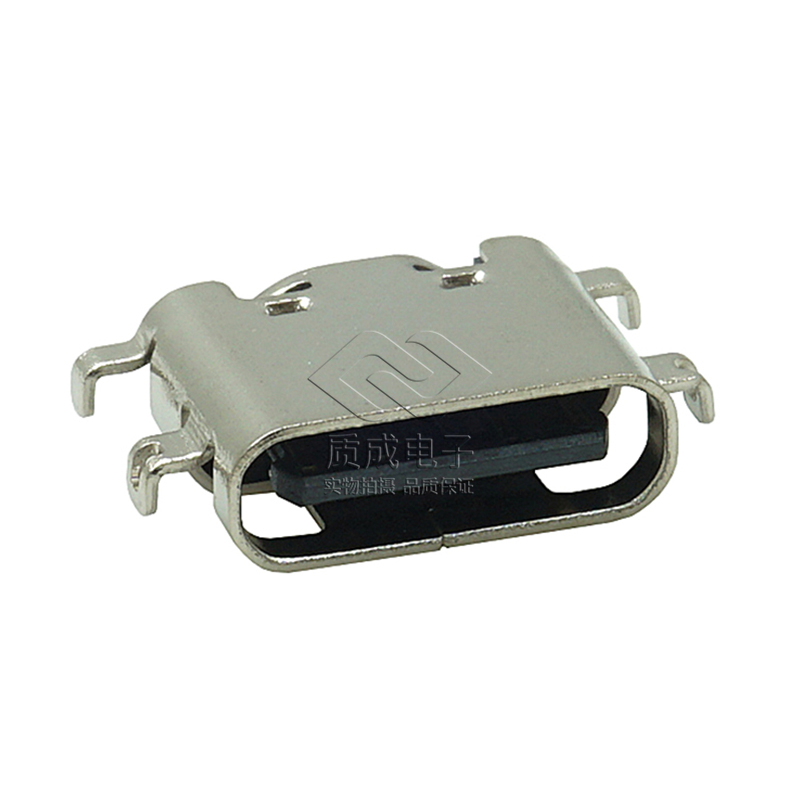 TYPE-C沉板母座連接器接口單排貼片16PIN四腳插板沉板 大電流快充