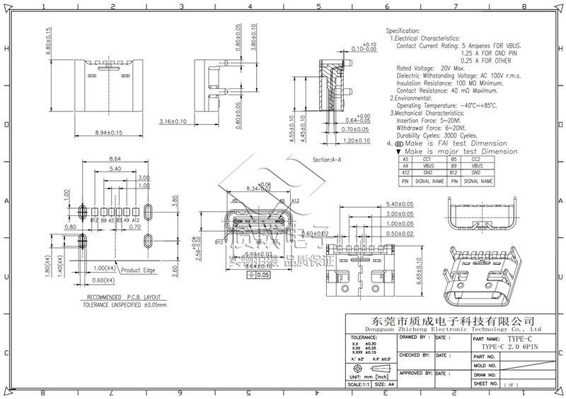 • 型號:TYPE-C 2.0 6PIN