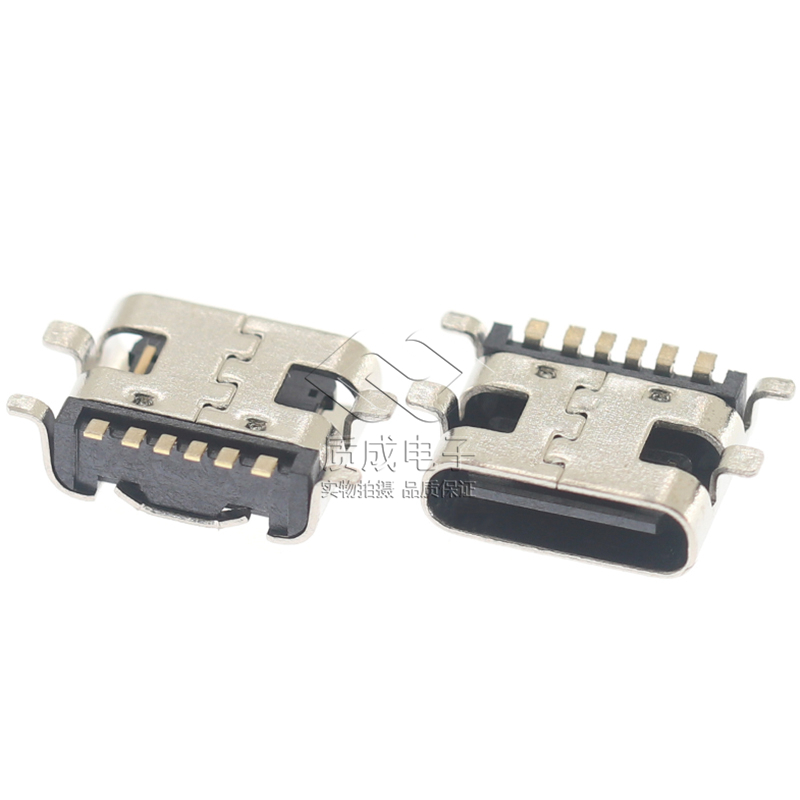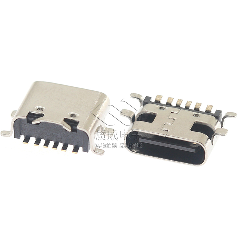 TYPE-C母座6Pin板上SMT臥式四腳插板 USB連接器手機(jī)充電端子貼片