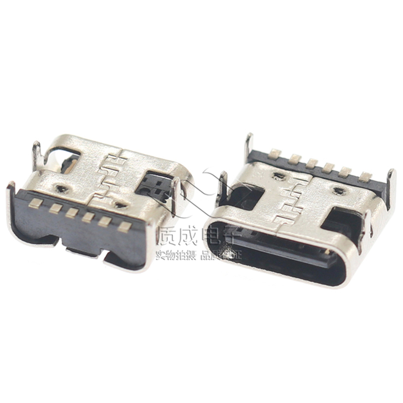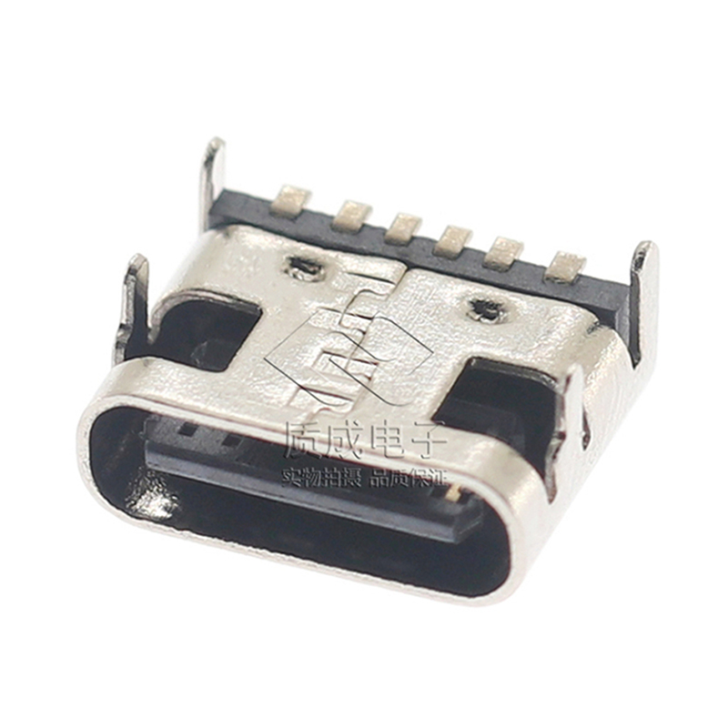 TYPE-C母座6Pin板上SMT臥式四腳插板 USB連接器手機充電端子貼片