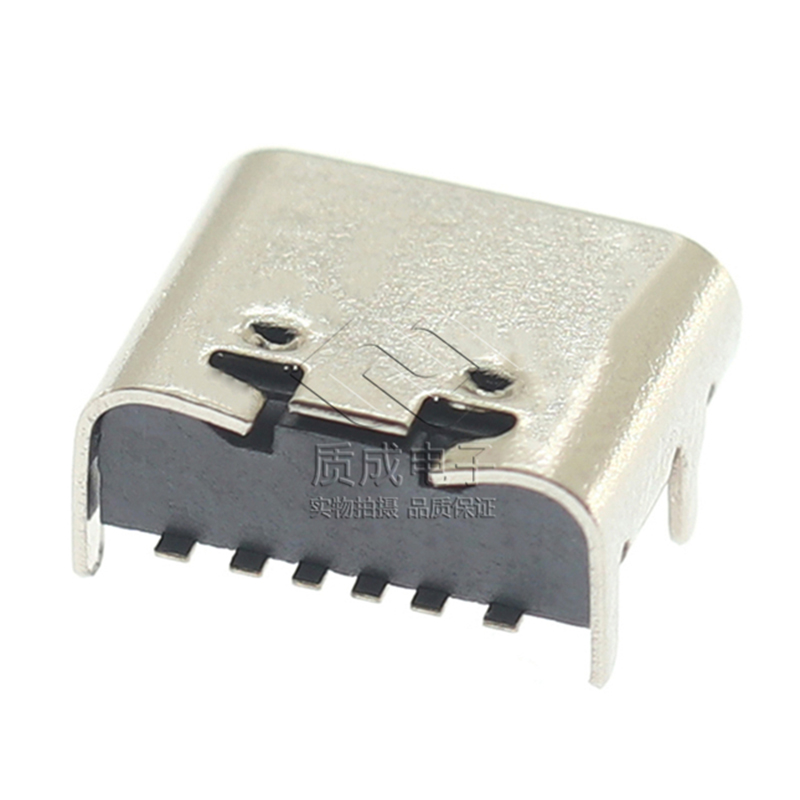 TYPE-C連接器6PIN單排臥式板上四腳固定全貼SMT 大電流快充母座