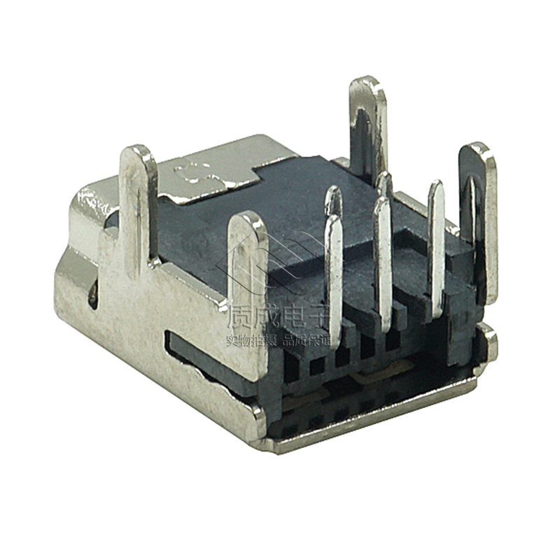 Micro 5P四腳插板直邊反方向沉板1.0無(wú)翻邊貼片母座 無(wú)線充