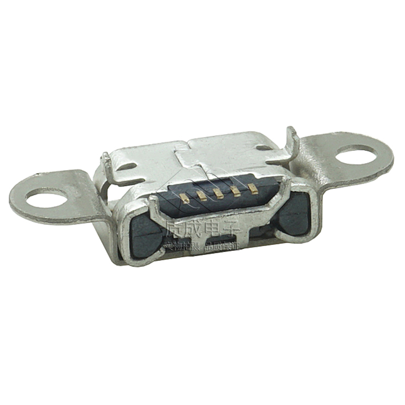 MICRO USB 5P SMT TYPE貼板牛角帶雙耳帶鎖孔無翻邊