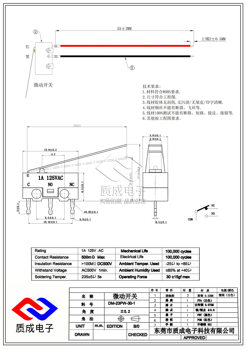 小型帶短柄微動開關3AKW2微動開關大電流行程