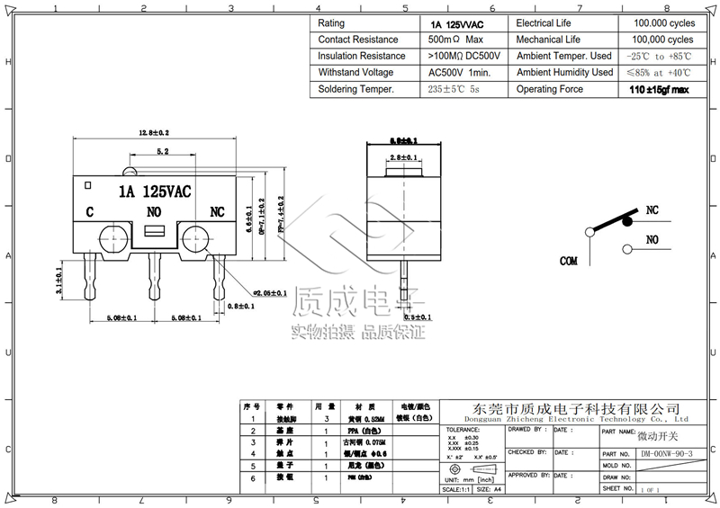 小型帶短柄微動(dòng)開(kāi)關(guān)3AKW2微動(dòng)開(kāi)關(guān)大電流行程