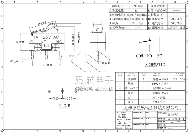 大微動開關(guān)自動售賣機(jī)微動開關(guān)三腳行程限位大電流微動開關(guān) KB-16-00N-300-1