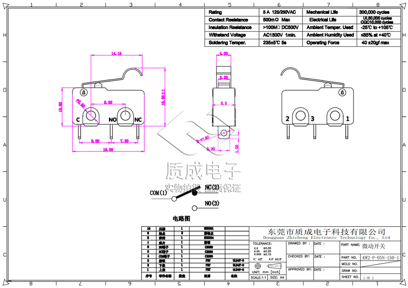 大微動開關自動售賣機微動開關三腳行程限位大電流微動開關 KB-16-00N-300-1
