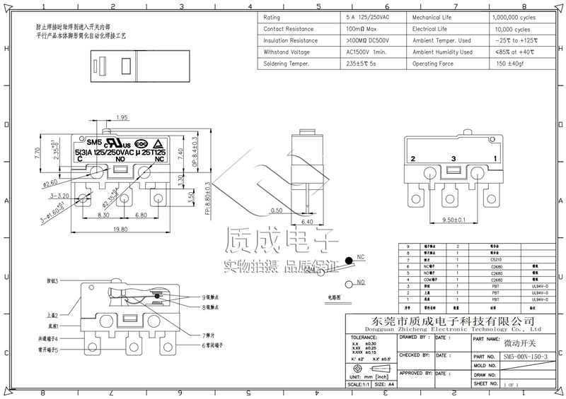 無柄碎紙機小微動執行閥微動開關三腳方孔插件靈敏輕觸按鍵開關